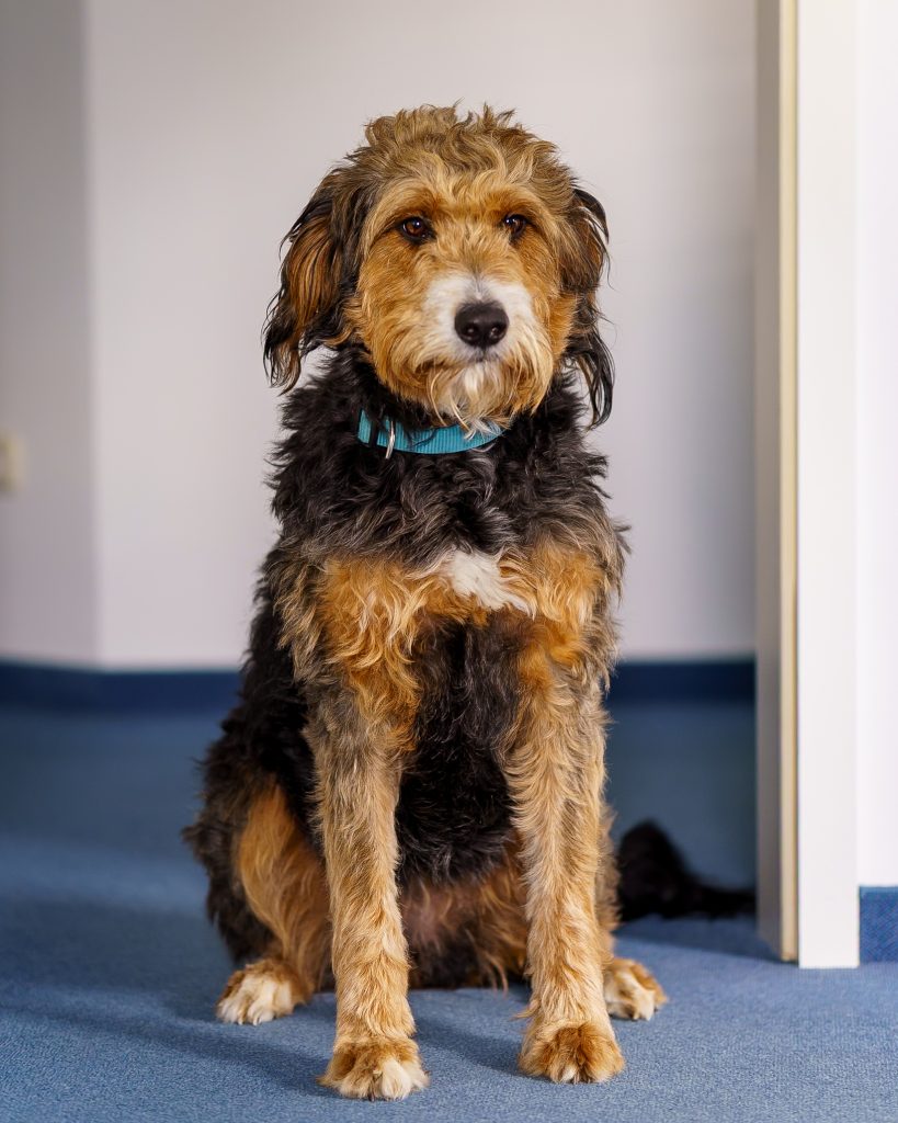 Unser Bürohund sorgt für gute Stimmung, kleine Pausen und manchmal ein wenig kreatives Chaos. Er ist Teil unseres Alltags und oft der erste, der Besuch begrüßt.